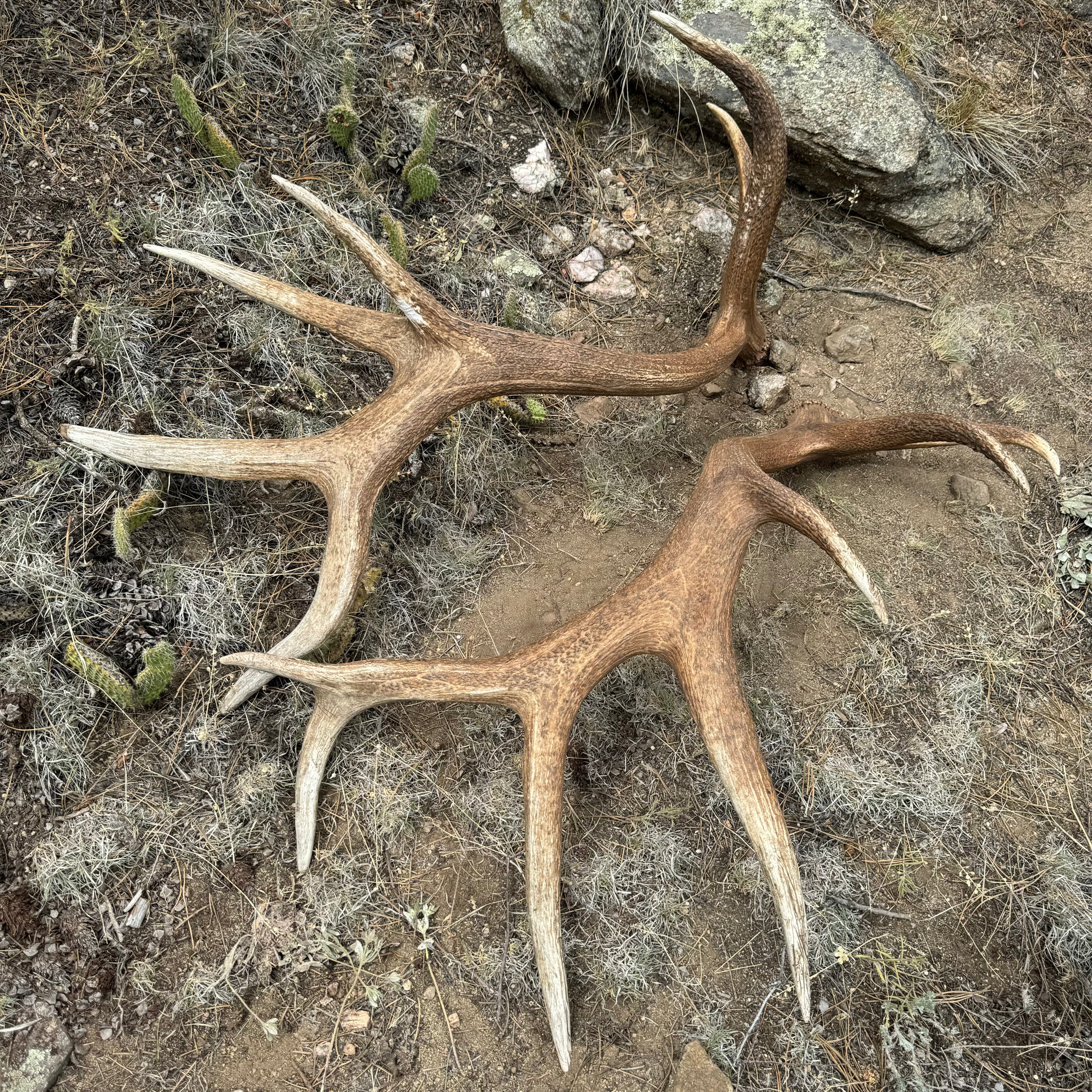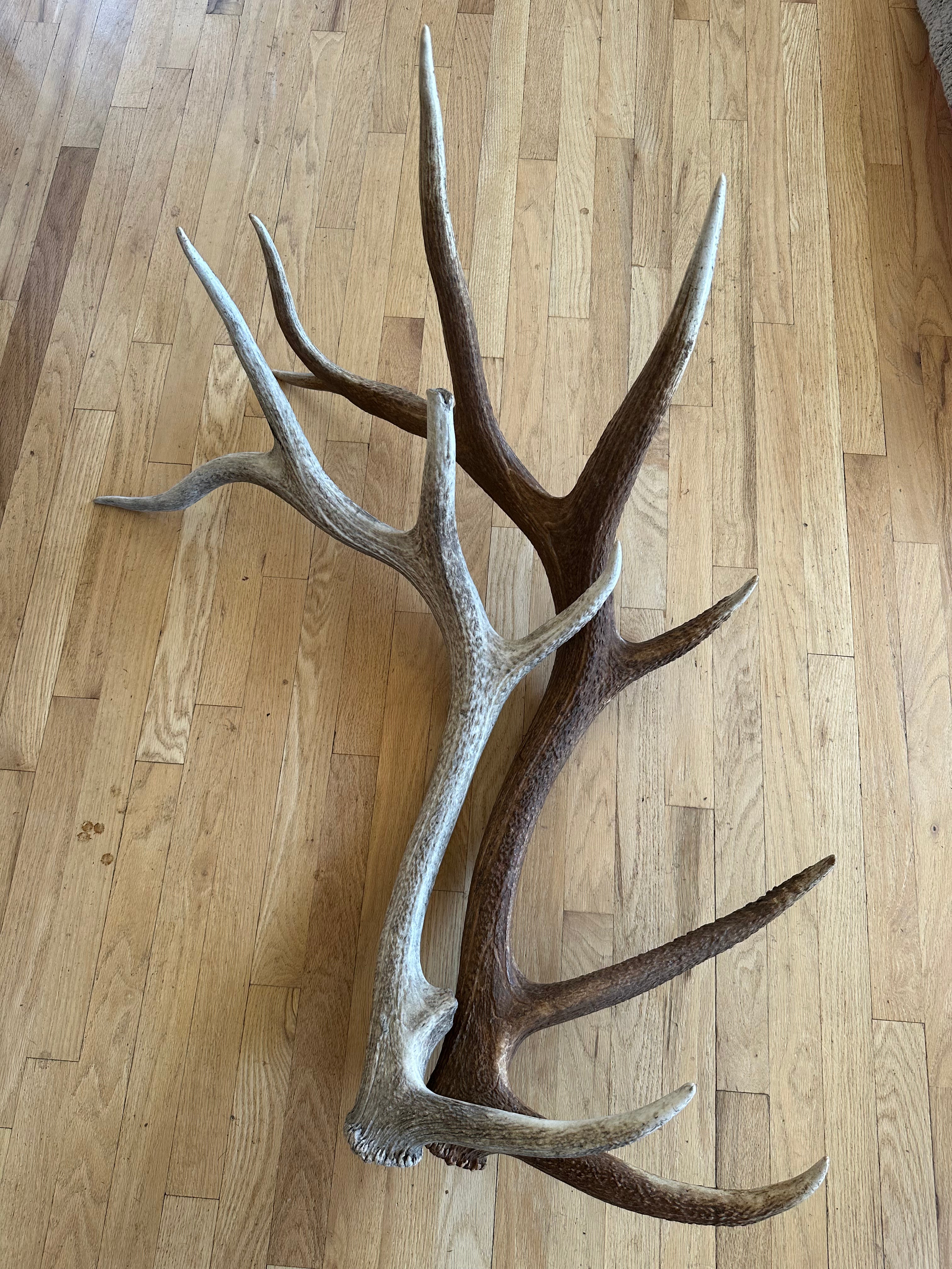 Certified "jaw-dropper" of a MAGNUM set. World class cast Elk antlers, in freshly minted condition. One of my all-time favourite sets from over 25 years of shed collecting. BIG and loaded with character, this is truly a one-of-a-kind find and offering. Also includes a prior years' left antler from the same bull (last photo), so the additional history adds to the legacy.