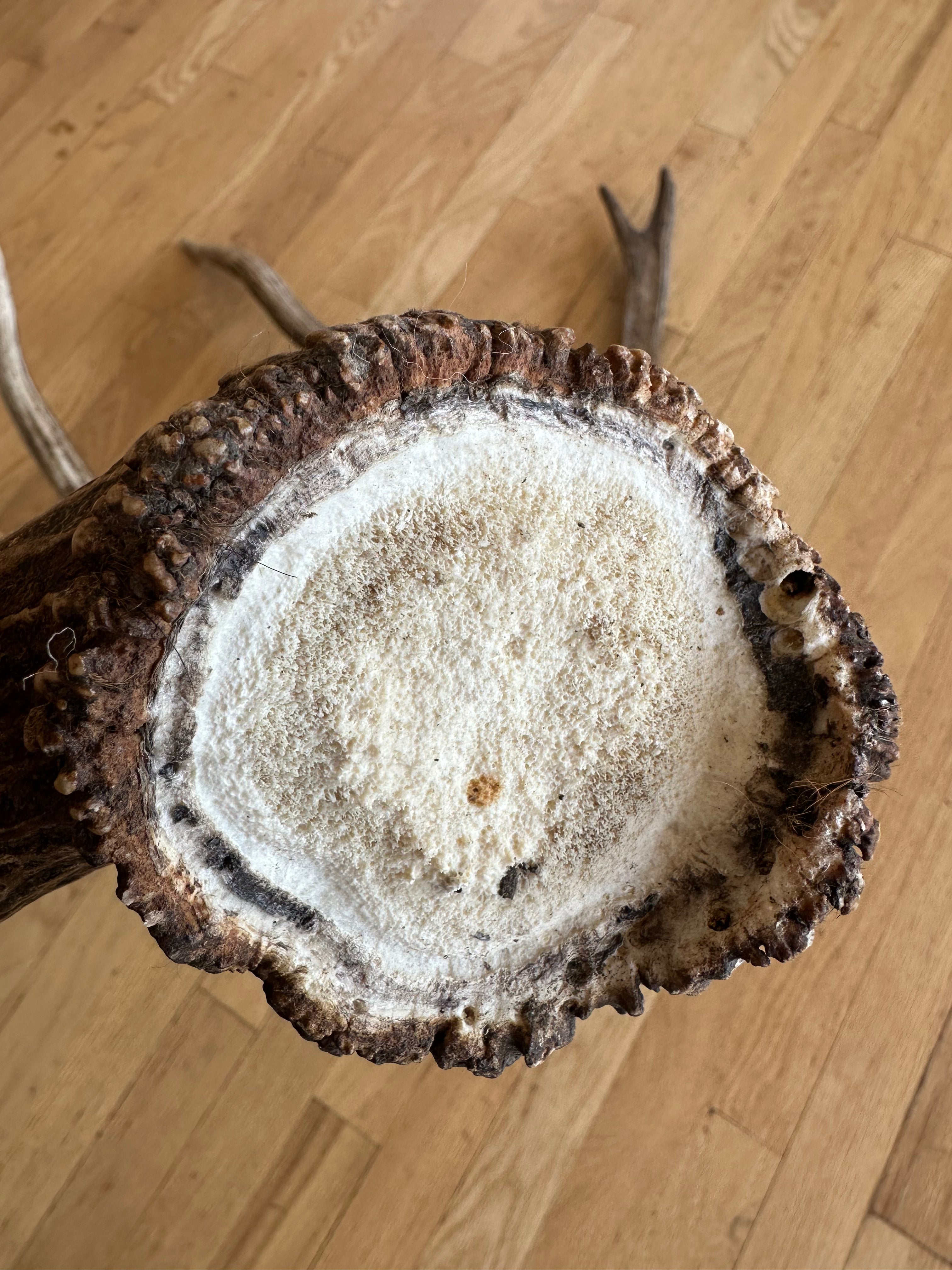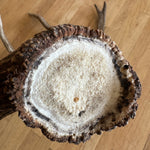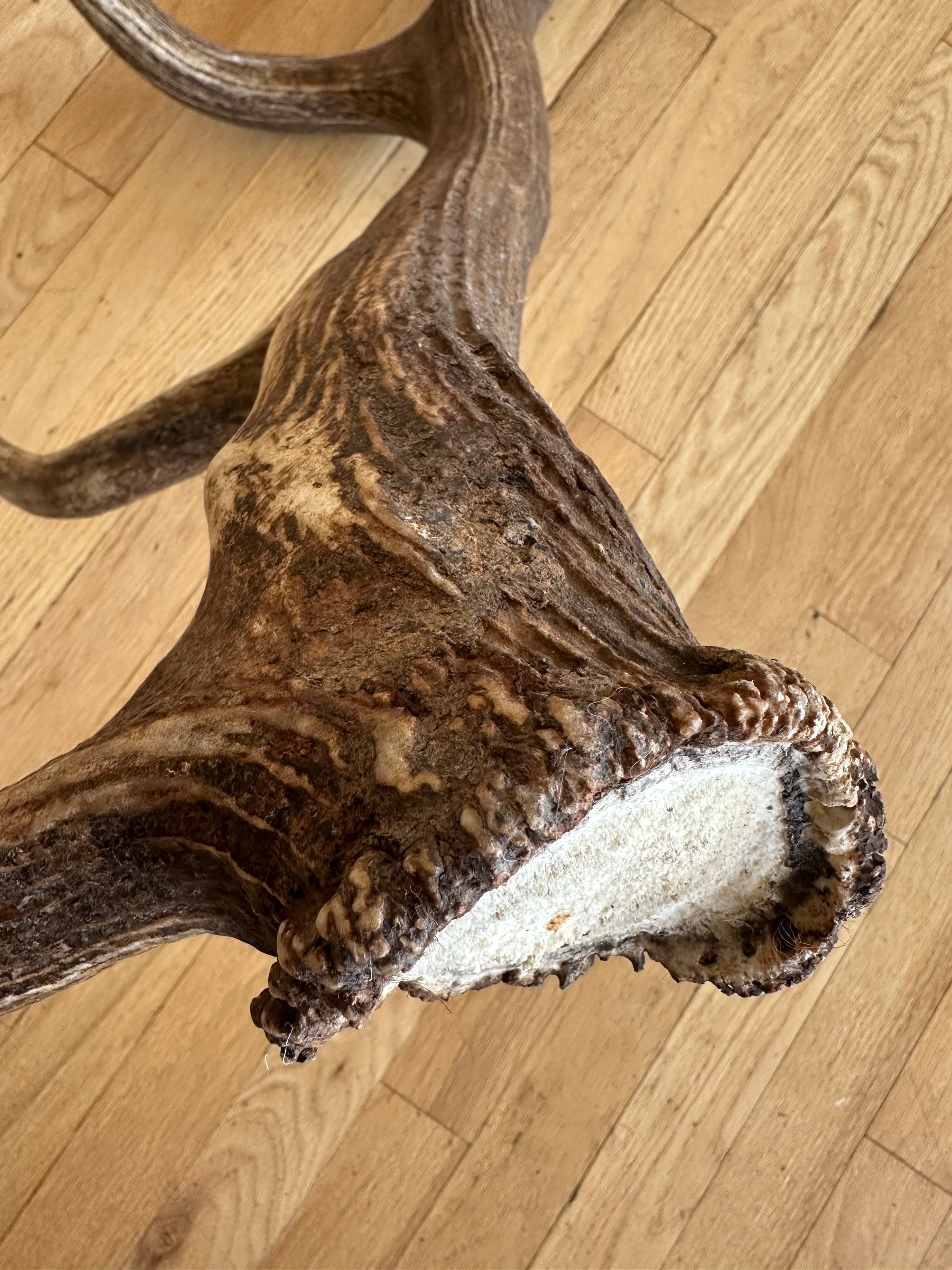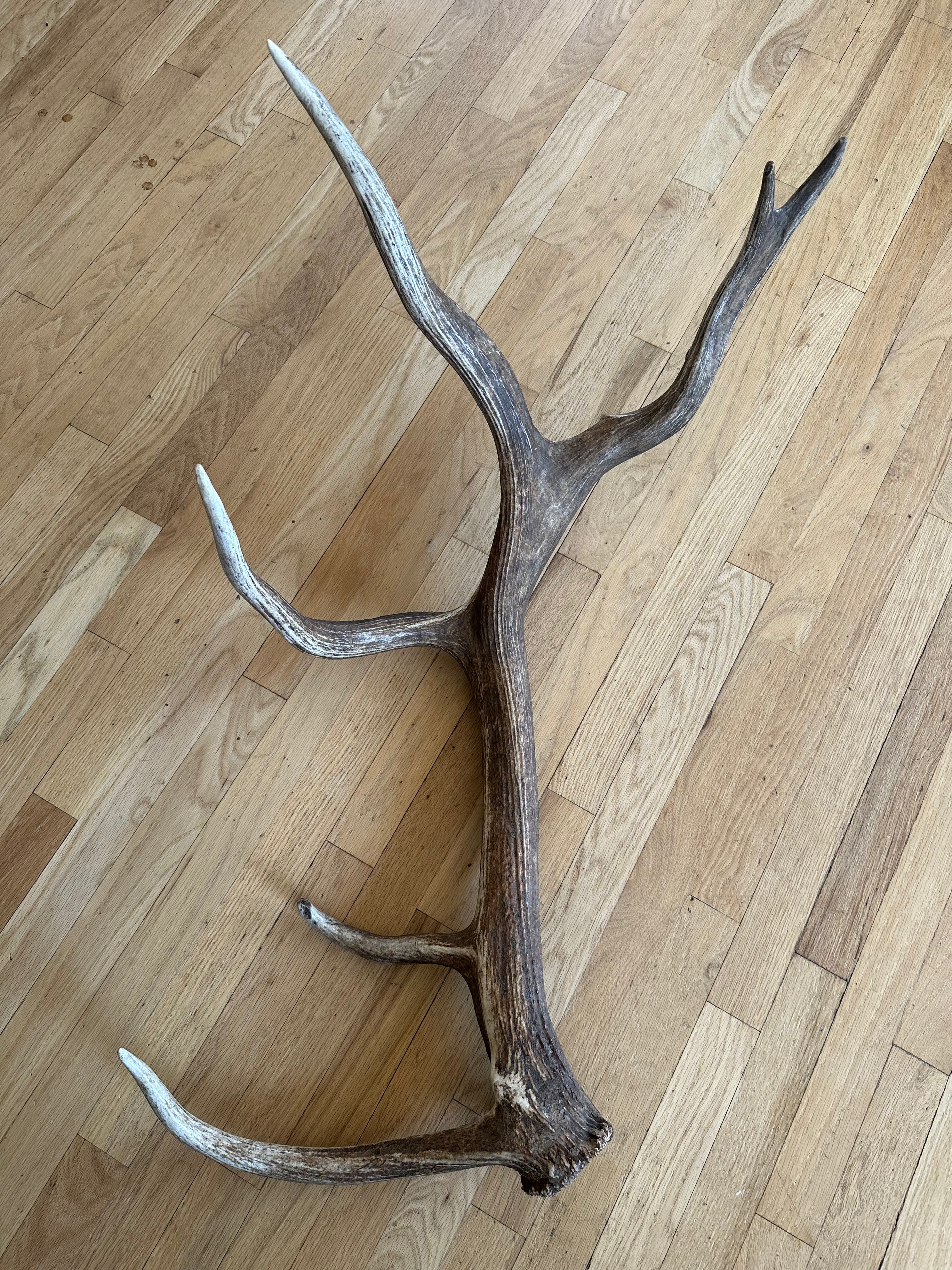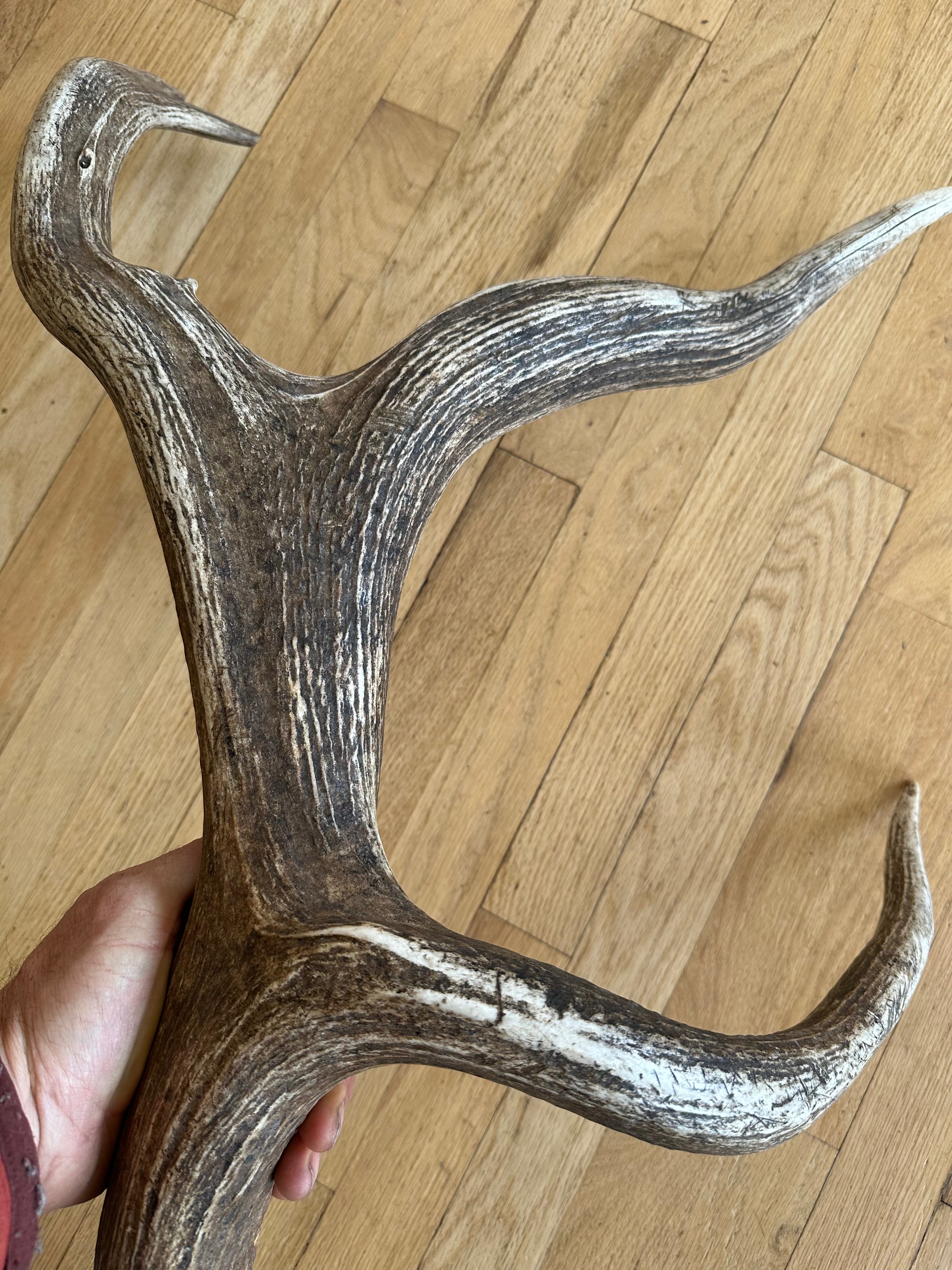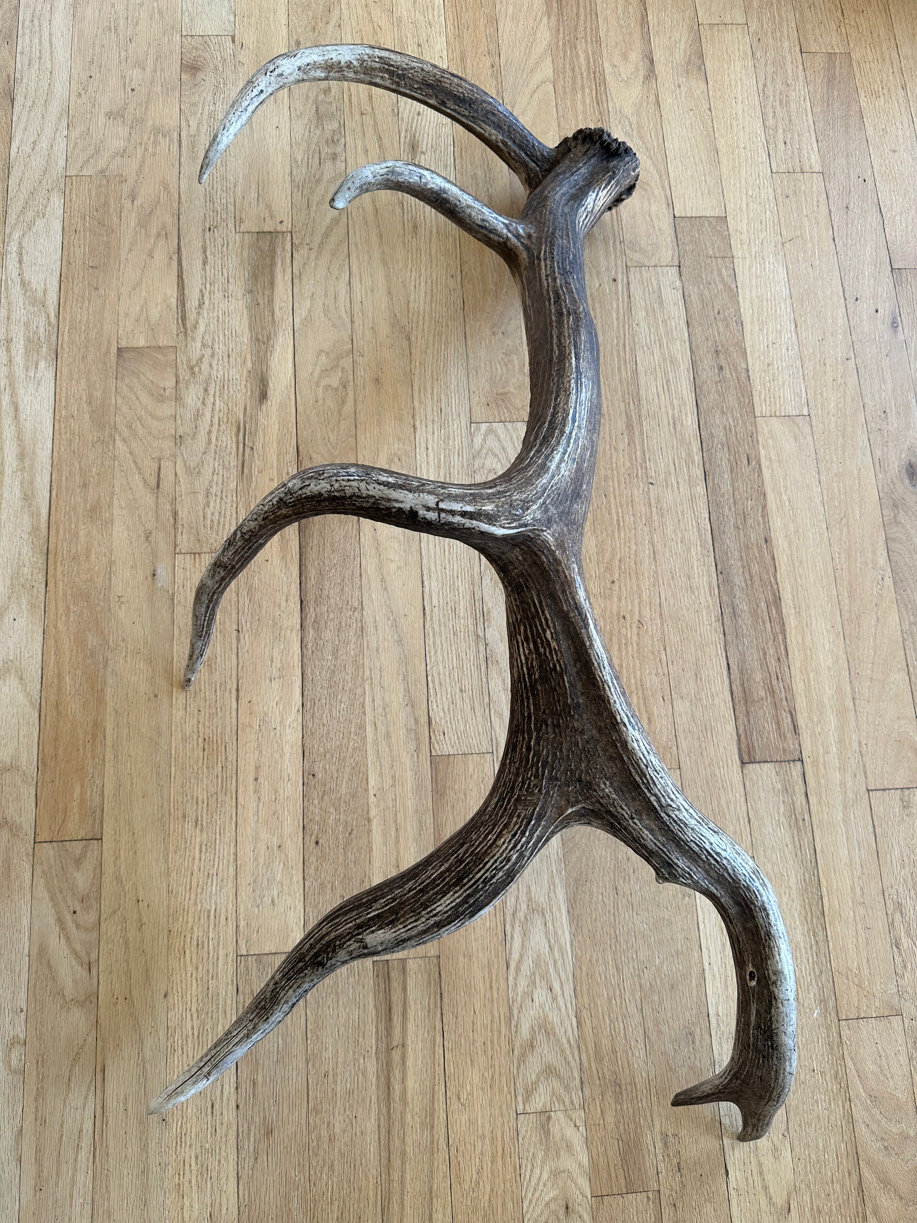Splendidly different, and stunningly beautiful Rocky Mountain Elk shed. Coloration and character are off the charts, as is the uniqueness. Antler texture and grain is unmatched. Particularly interesting, concave base/burr. This antler is pure specialness!